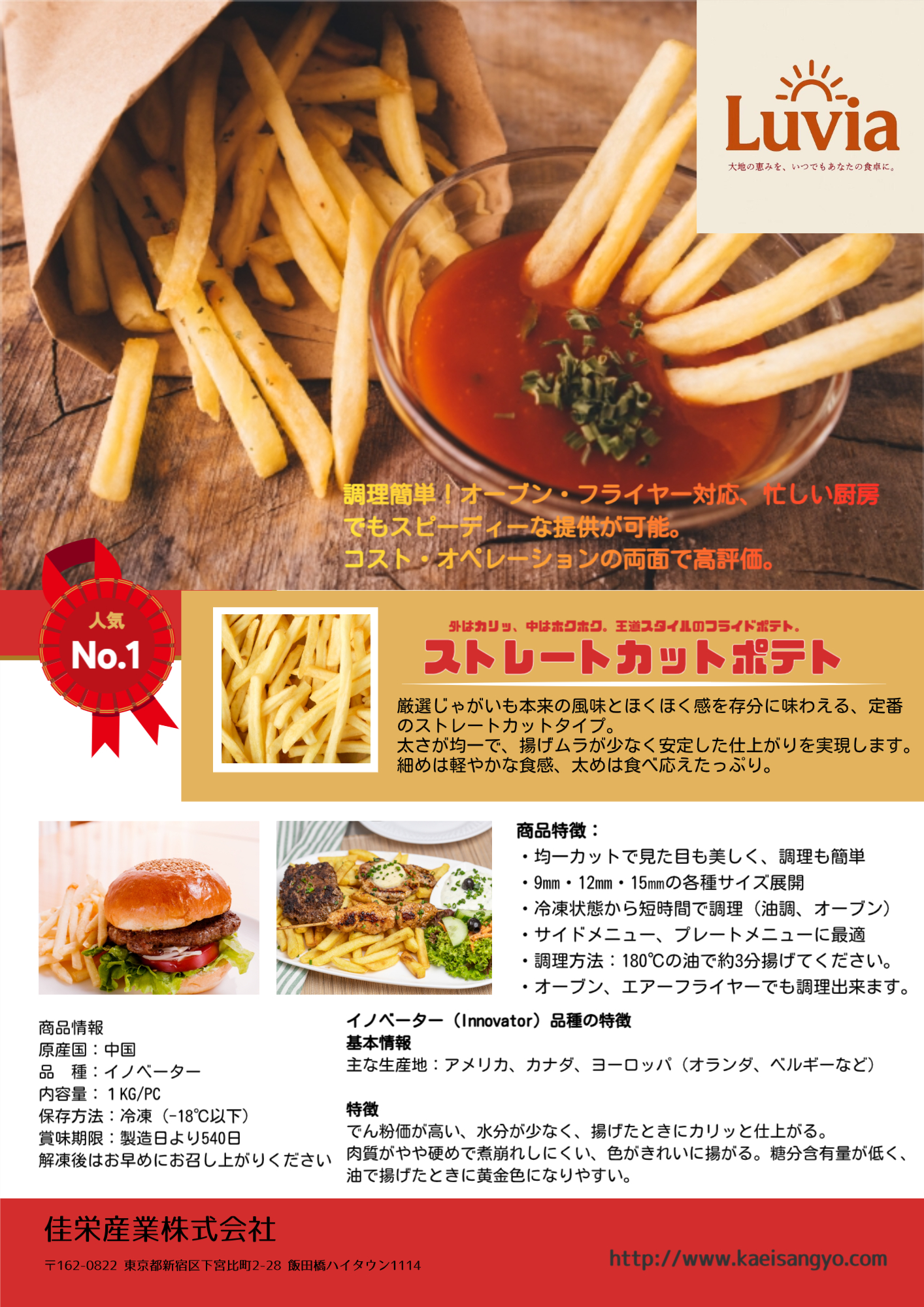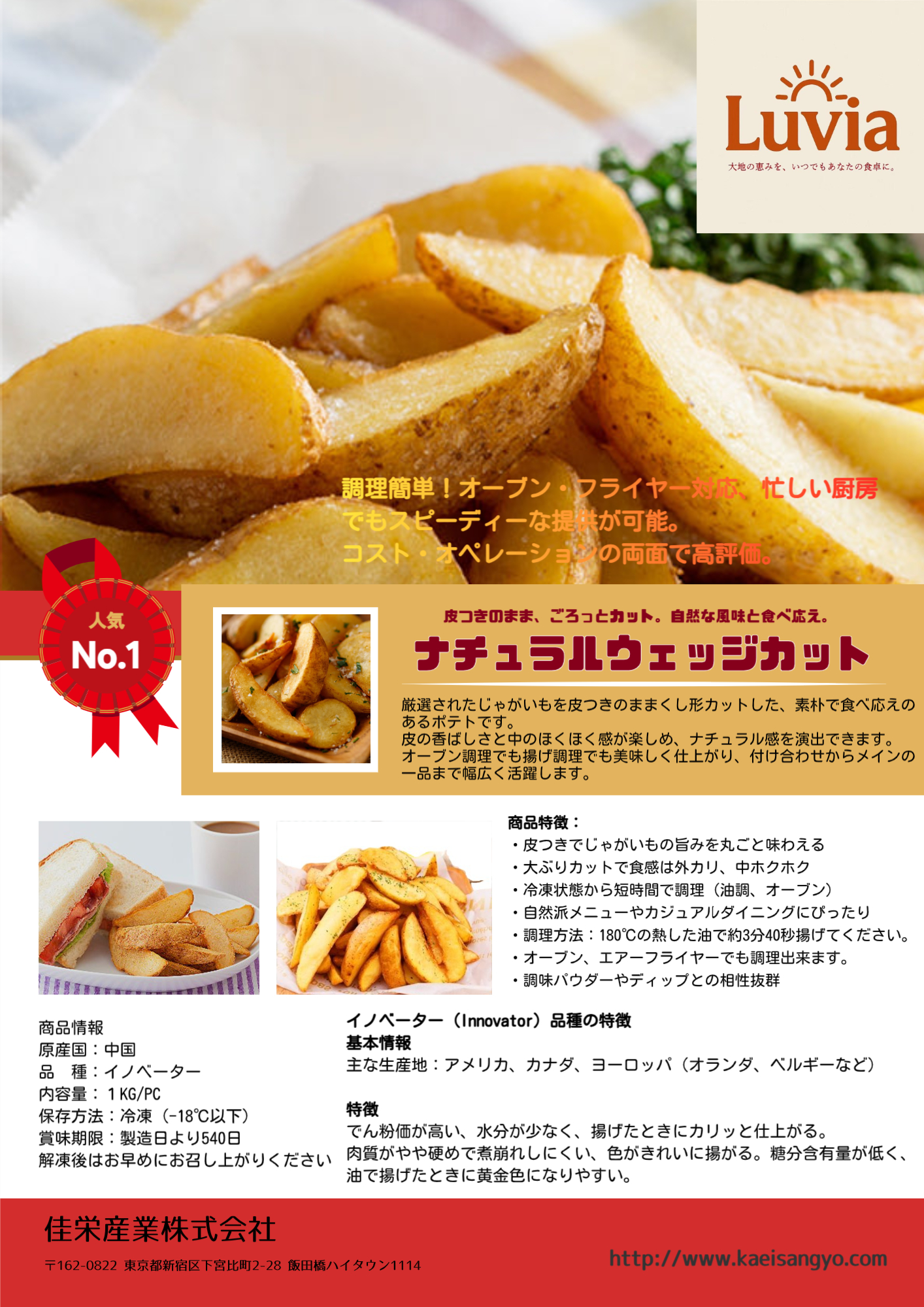 ・加工適性:フライドポテト、ポテトチップス、マッシュポテトなど幅広い用途に適している