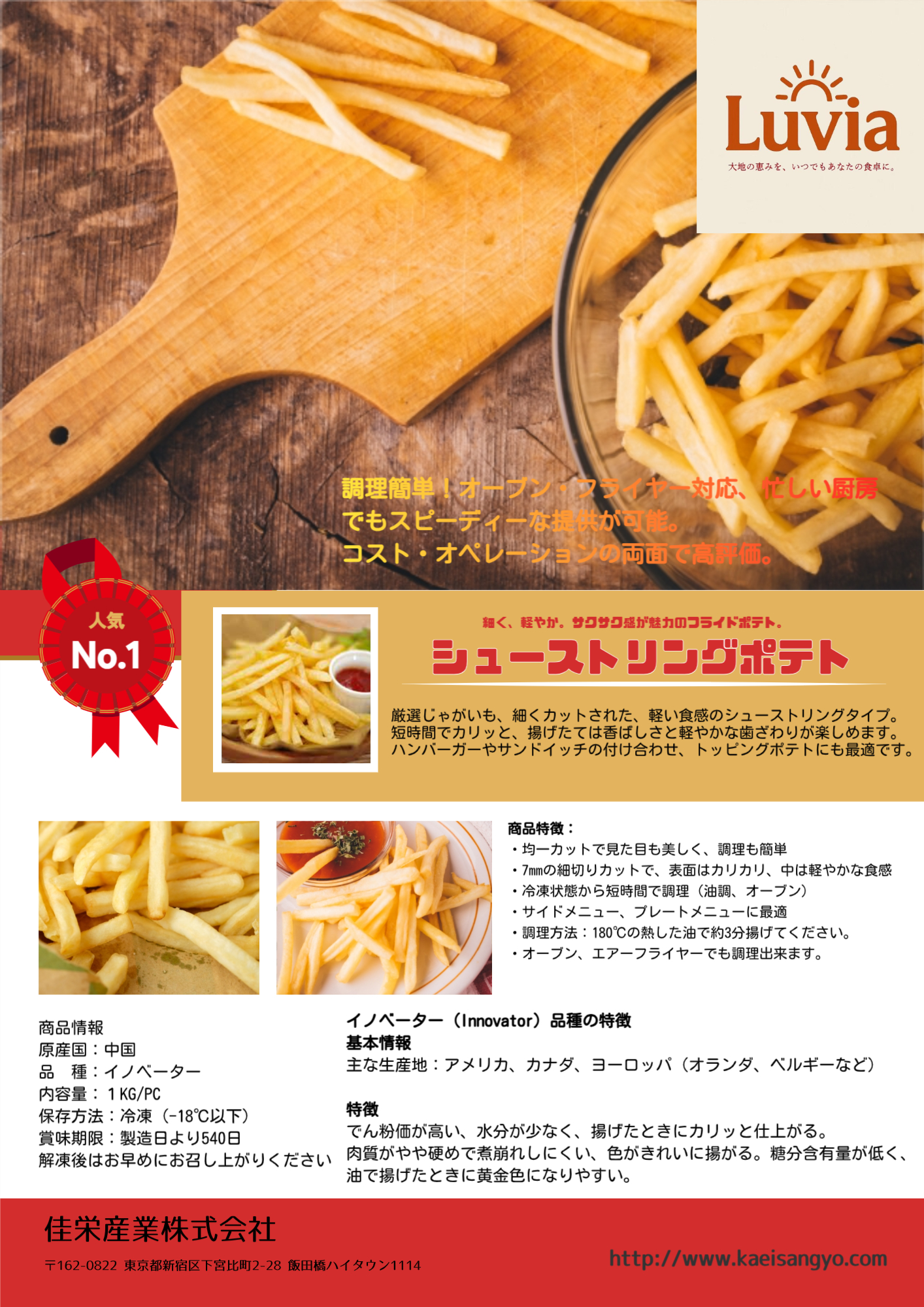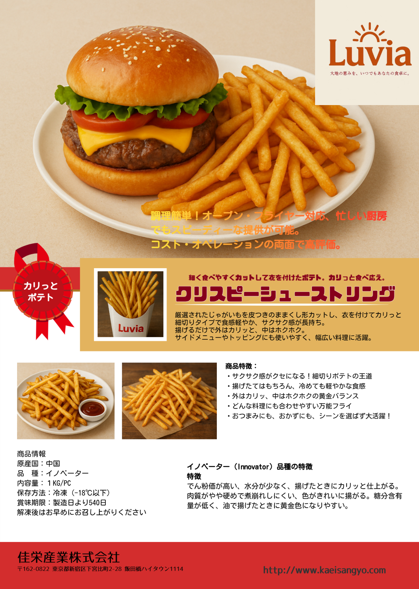 ・大粒で長さもあるため、ストレートカットやシューストリングなどの加工で効率が高い