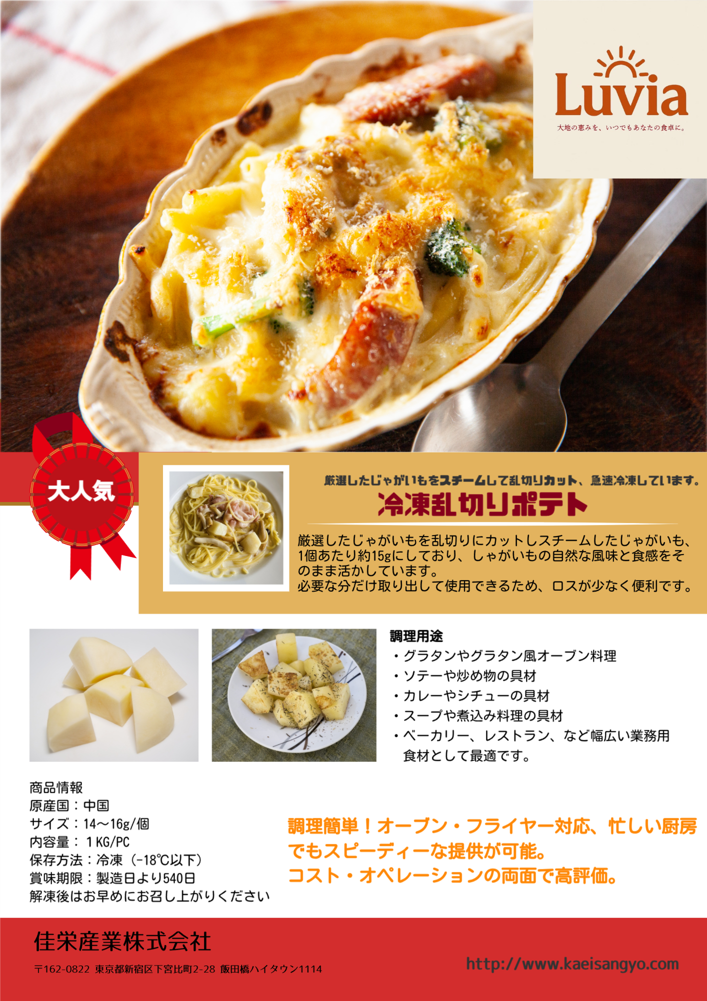 ・フライドポテトだけでなく、チップスやマッシュなど加工幅が広い