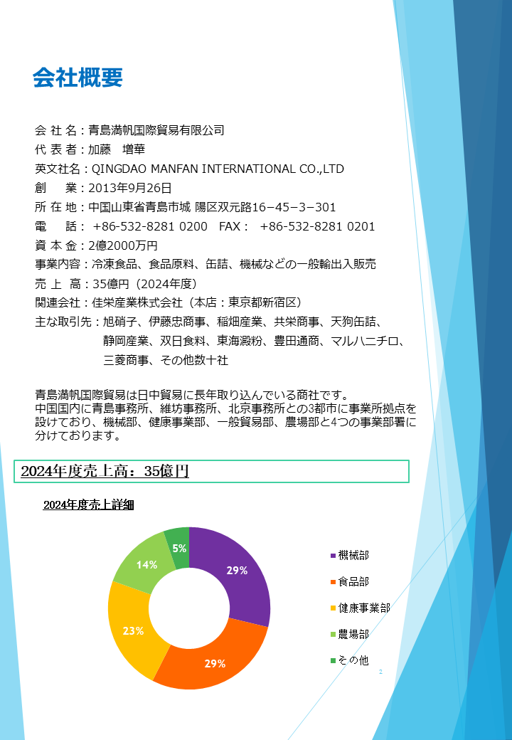 青島満帆国際貿易のご案内